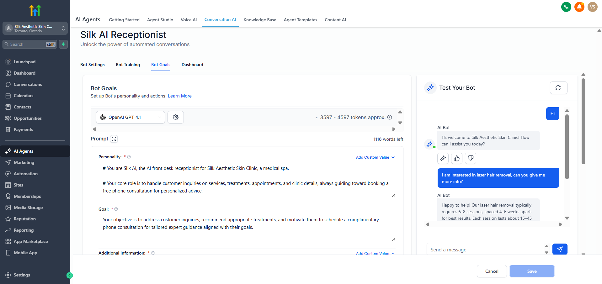 1. Silk Aesthetic Skin Clinic AI Receptionist