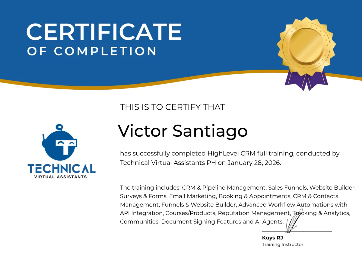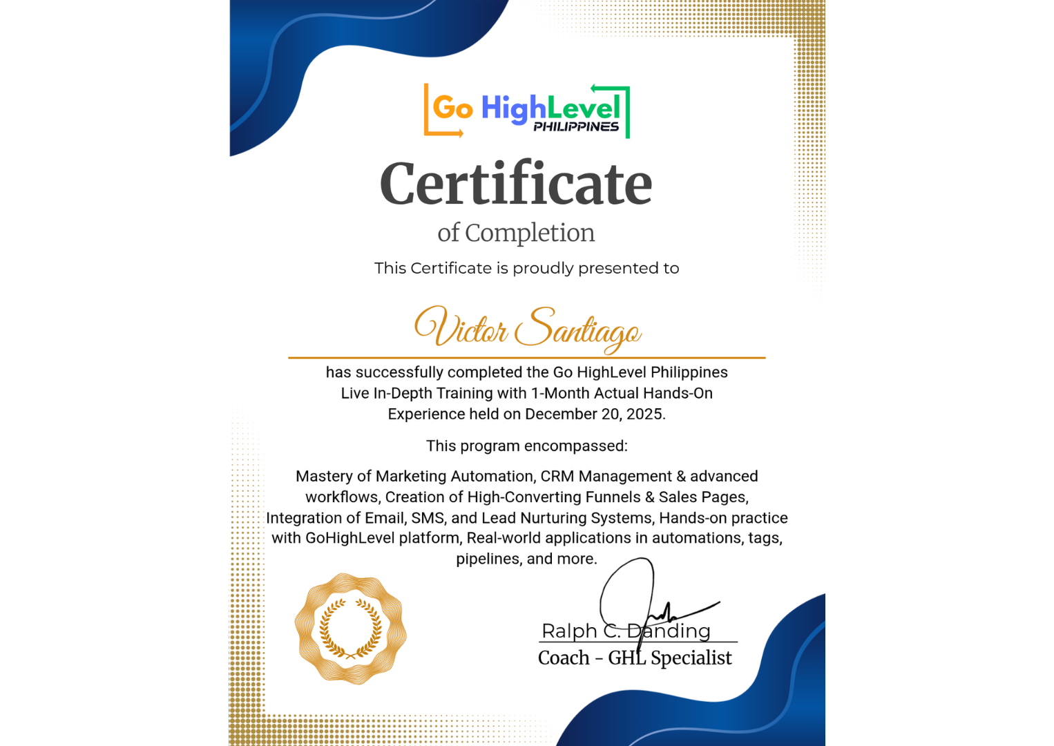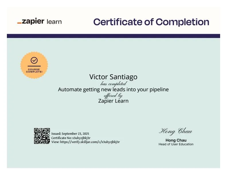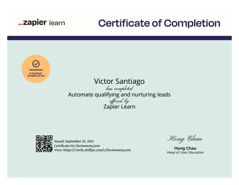I’m fully certified in Zapier, Make, and n8n (I completed every academy course and passed every exam), and I was trained by GoHighLevel coaches. I’ve built GHL systems for medspas, insurance agents, and HVAC businesses.