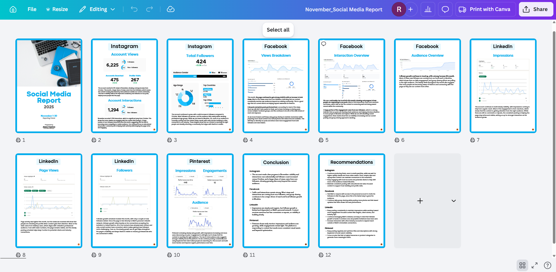 I was also a Social Media Manager serving Medspa businesses, doing content strategy & creation, posting on Facebook and Instagram, analytics reporting, and providing training to new hires and aspiring Social Media Managers.