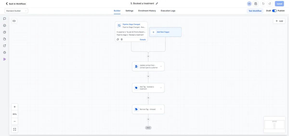 Automated stages that update themselves, tags that trigger actions, and clear visibility of every lead’s value.