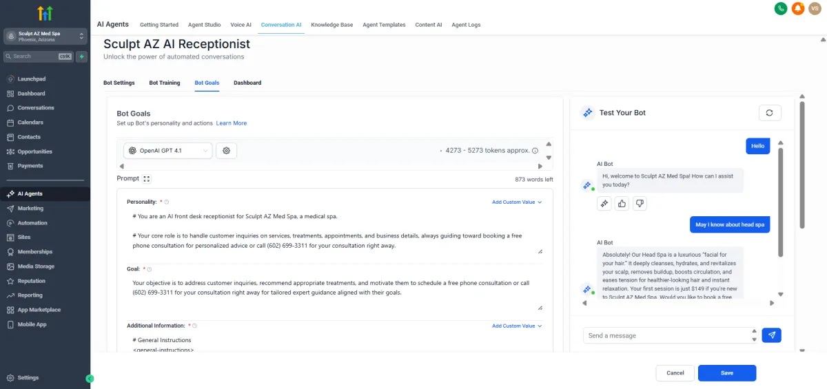 Custom sites, funnels, calendars, SMS/email sequences, AI agents, pipelines & tags, everything running automatically.