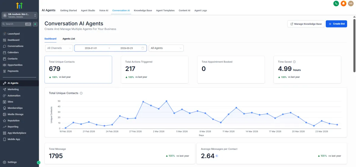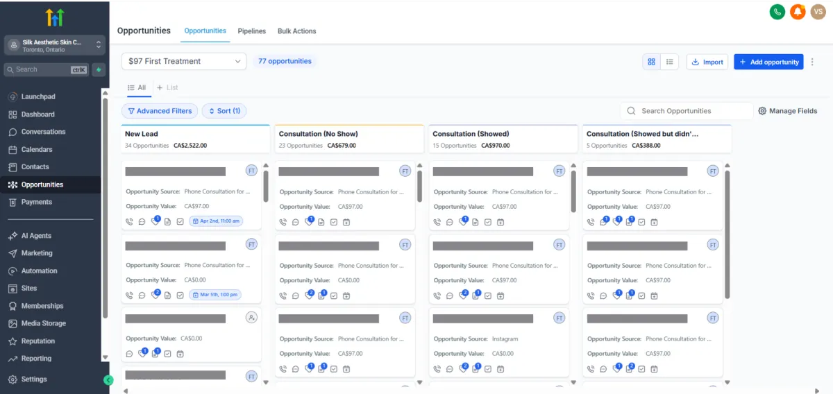 Custom sites, funnels, calendars, SMS/email sequences, AI agents, pipelines & tags, everything running automatically.